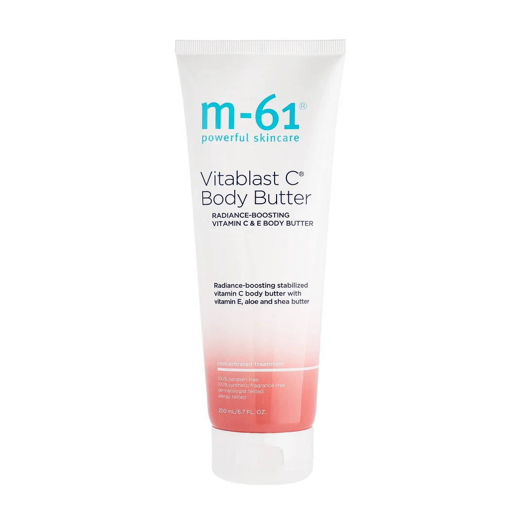 Radiance-boosting stabilized vitamin C body butter with vitamin E, aloe and shea butter.